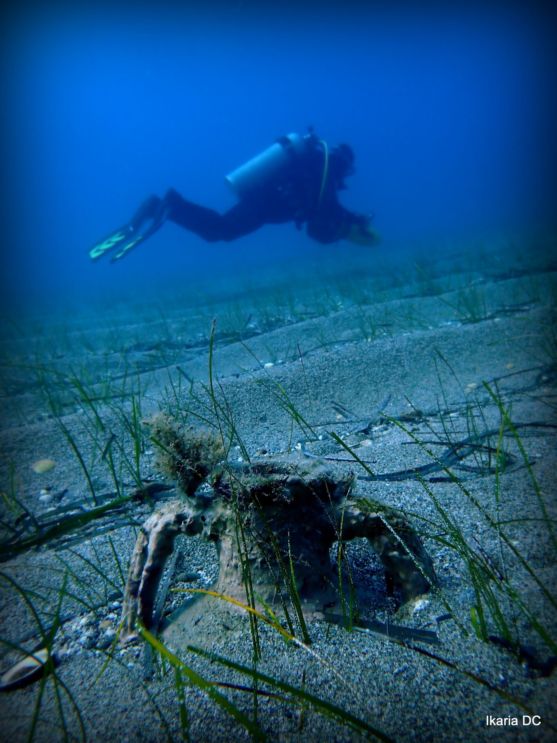 Faros Entering from a small pebbled shore and swimming above the sandy bottom, you may occasionally encounter moray eels or blue-spotted stingrays. About 15 minutes from the shore, you can discover the remains of ancient amphorae in the sand. The maximum depth is 13-15 meters.