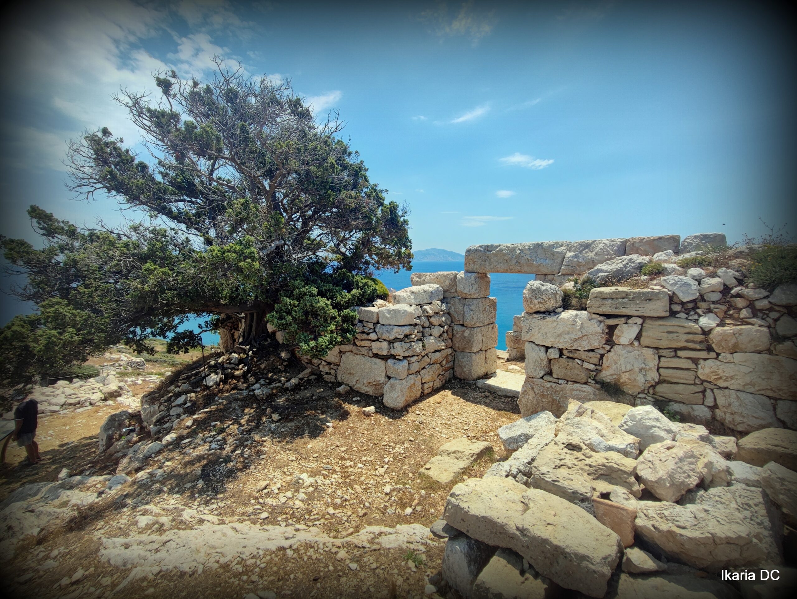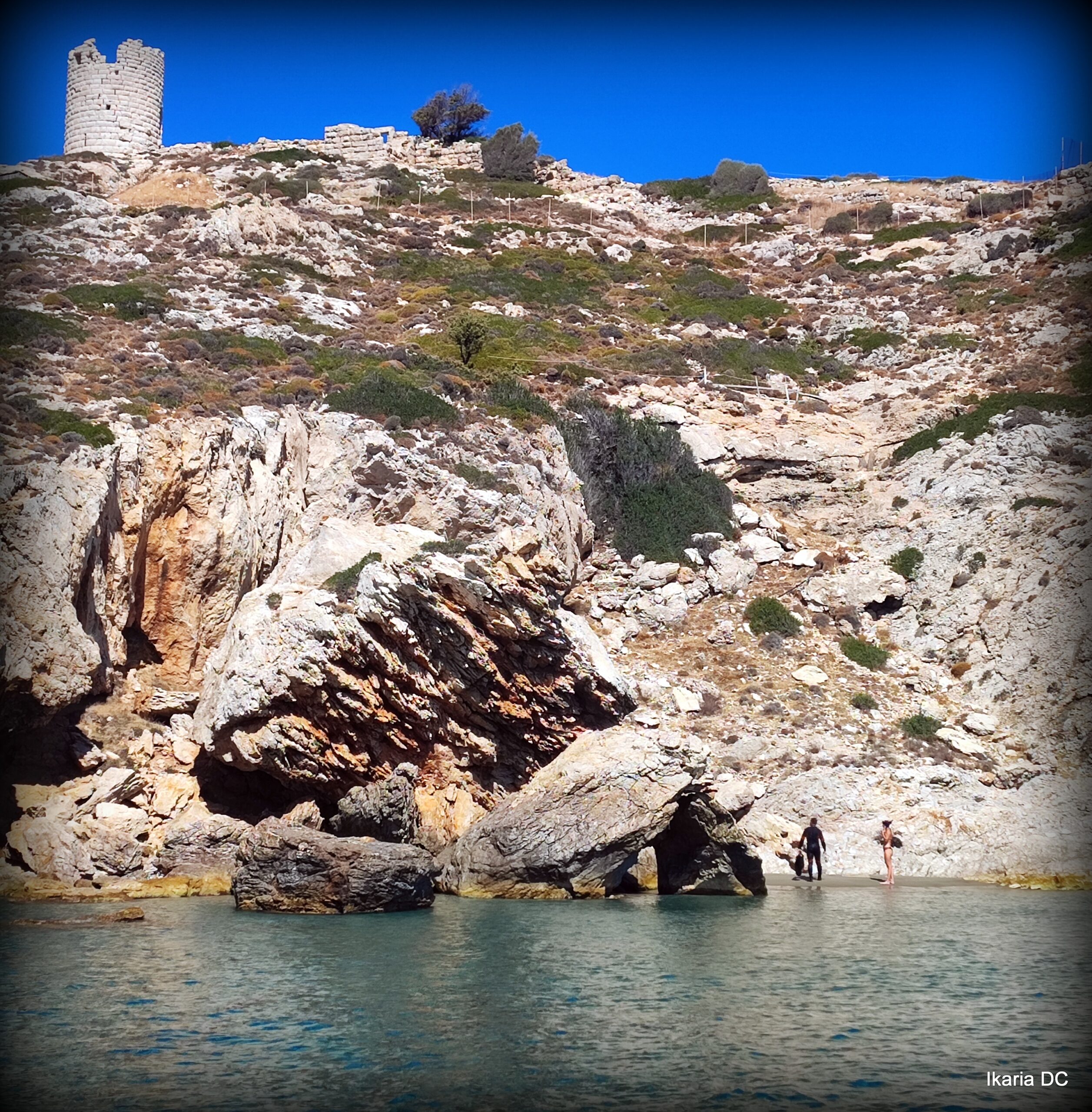 The 3rd-4th century BC watchtower and excavations at the eastern tip of the island offer stunning panoramic views of Samos and the nearby Fourni islands. If desired, we can descend from here to Agios Georgios Bay in about 20 minutes along a beautiful walking route, where you can enjoy a refreshing swim in the shallow, crystal-clear waters. The shore is sandy and pebbly, making it perfect for relaxation.